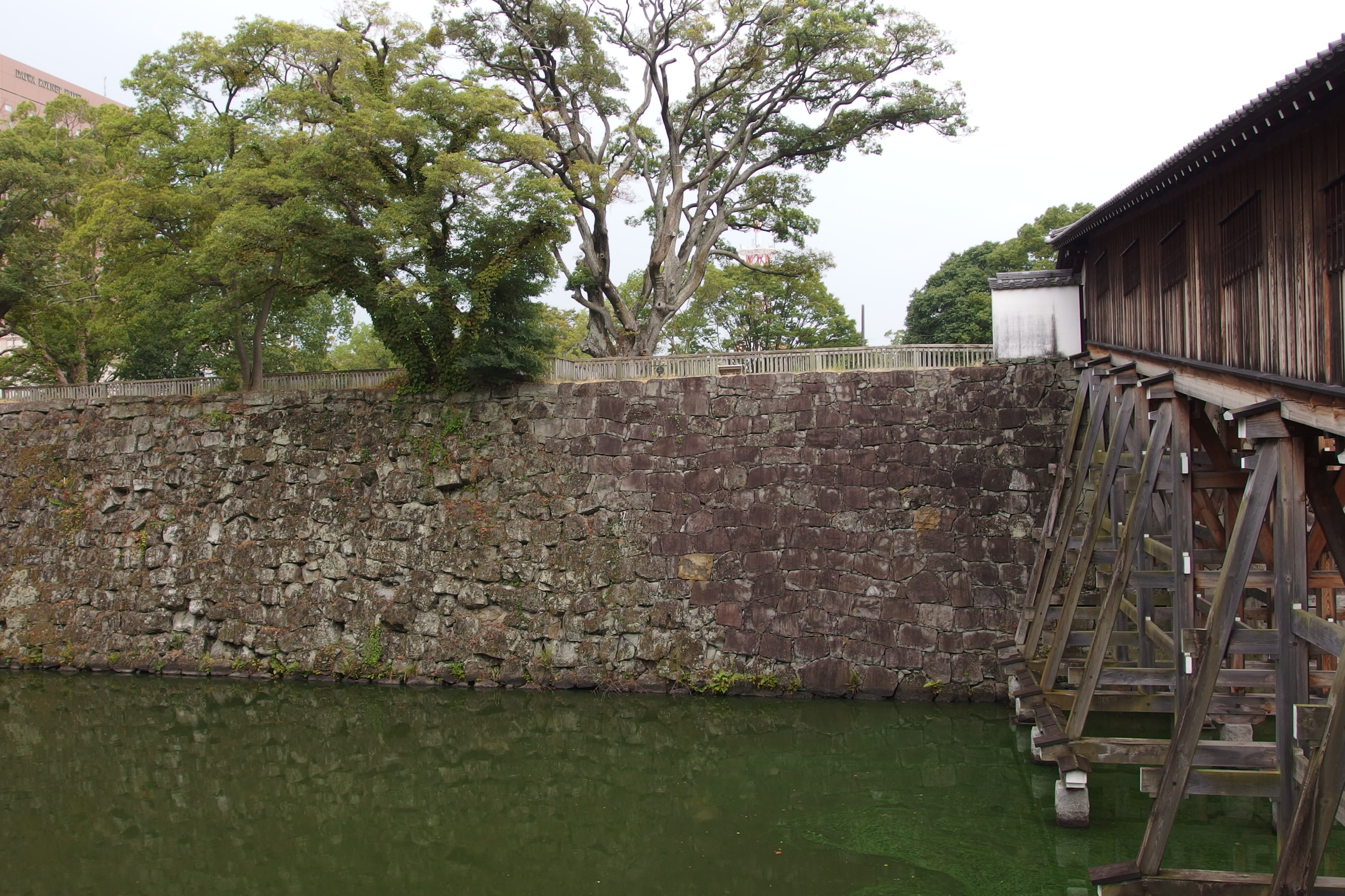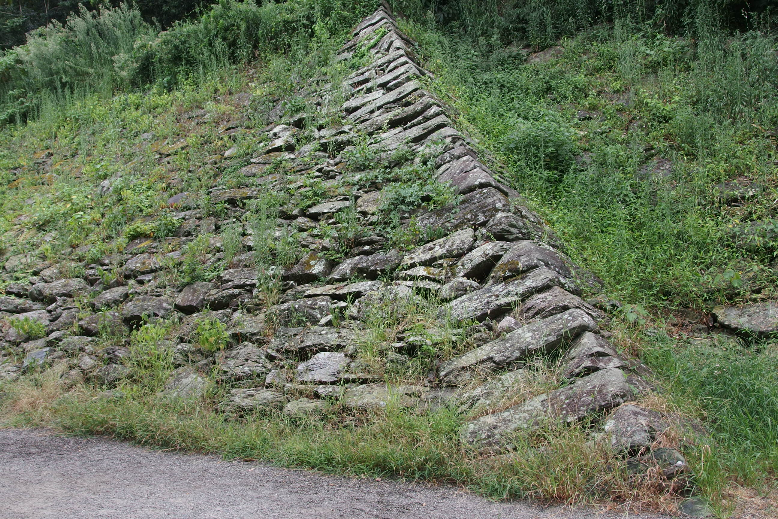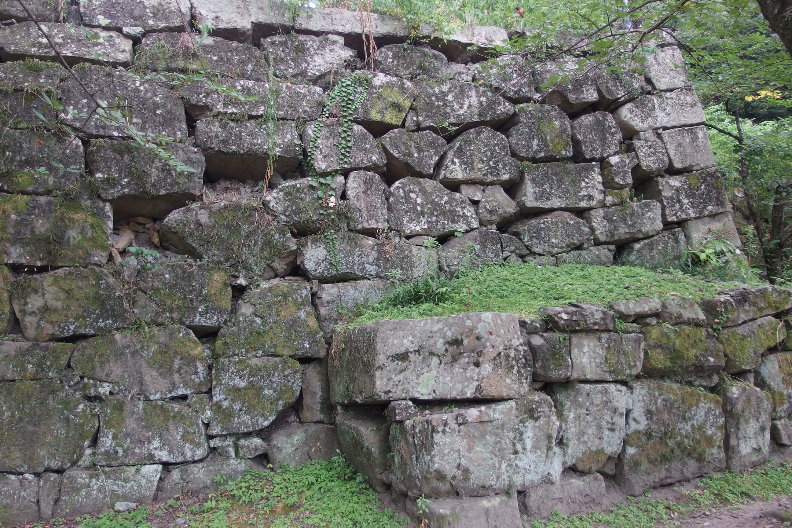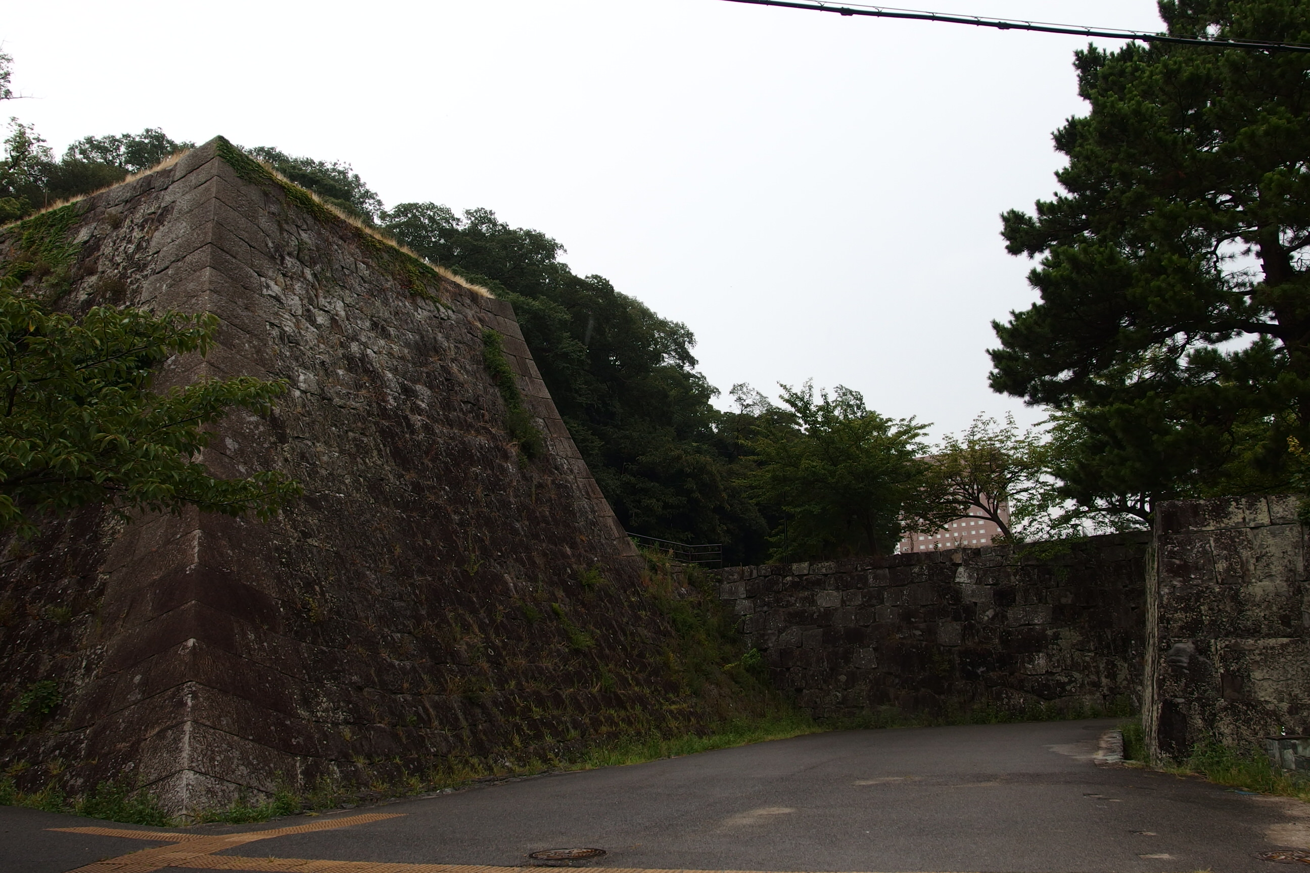この日は雨模様で、写真が暗くなってしまっているが、ジェンガのように几帳面な石垣である